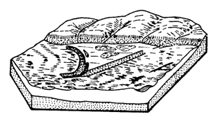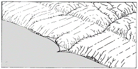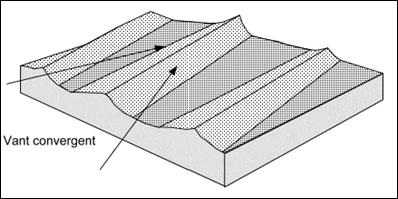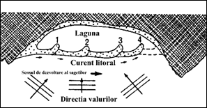 Fig. 19. Recurbarea sagetilor litorale datorita actiunii combinate a valurilor care se propaga din directii diferite (Selby, 1985).