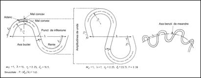 Fig. 9. Principalele componente ale geometriei unui meandru (Leopold et al., 1964 ; Selby, 1985)