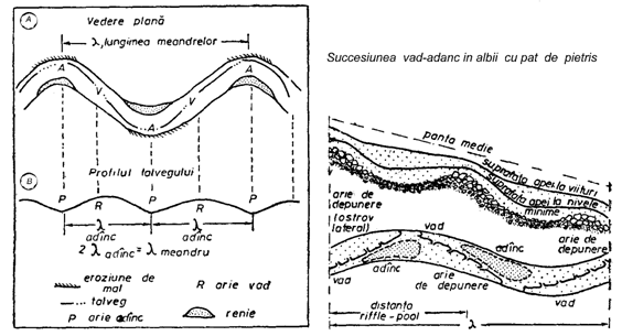 Mai trebuie sa retinem ca aceasta morfologie nu este caracteristica, asa cum se credea, albiilor meandrate, aluviale, ci tuturor categoriilor de albii, inclusiv in roca in loc.