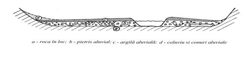 - un complex de pietrisuri cu bolovanis, situat in general in patul vaii aluviale;