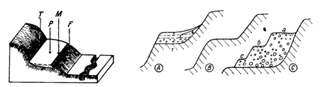 Fig. 16. Elementele unei terase: Fig. 17 Structura teraselor: A - terasa aluviala;