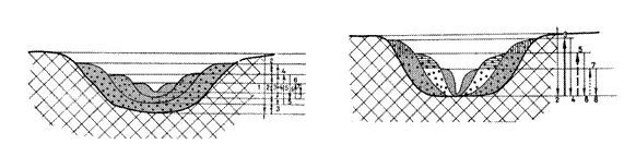 A) Dupa forma in profil transversal cercetarile pe o mare populatie de sectiuni de albie au evidentiat cca doua tipuri de forme cu o mare stabilitate: