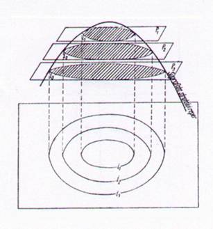 Fig.98. Constructia hartilor cu izobate utilizand sectiunile geologice.