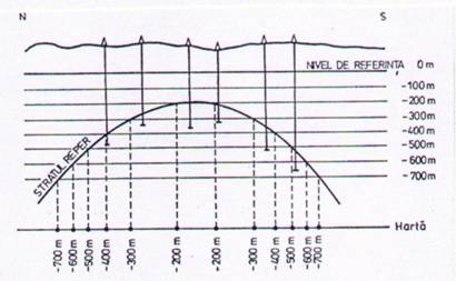 se suprapune marginea sectiunii pe linia de profil de pe harta si se insemneaza puncul de intersectie, inscriindu-se valorile izobatice. Toate operatiile descrise la punctele de mai sus se efectueaza pe fiecare sectiune geologica intocmita pe structura ;