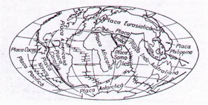 Prin cercetari s-a ajuns la concluzia ca scoarta terestra este alcatuita din mari unitati numite placi litosferice cu arii de zeci de milioane de km2 , ce inglobeaza atat domenii oceanice cat si continentale. Initial litosfera pamantului (patura superioara rigida constituita din scoarta si partea extrem periferica a mantalei) a fost impartita in sase placi : euro-asiatica, africana, australiana, antarctica, pacifica si americana. Ulterior au fost separate in interiorul placii pacifice alte doua placi - Nasca si Cocos-, placa americana a fost despartita in doua de placa Caraibilor, iar cercetari ulterioare au mai conturat o serie de micro-placi. (fig. 9).