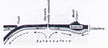 Fig. 10. Sectiune schematica pentru reprezentarea teoriei deplasarii placilor litosferei.