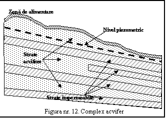 In natura, adesea, exista mai multe strate acvifere captive suprapuse, dispuse sub forma unor complexe acvifere (Figura nr. 12).