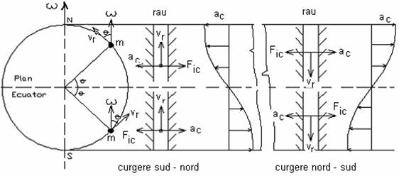 In coturile cu concavitatea la mal drept (emisfera nordica) Fc si Fic se cumuleaza si se intensifica circulatia transversala. In coturile cu concavitatea la malul stang circulatia transversala slabeste sau se poate anula.