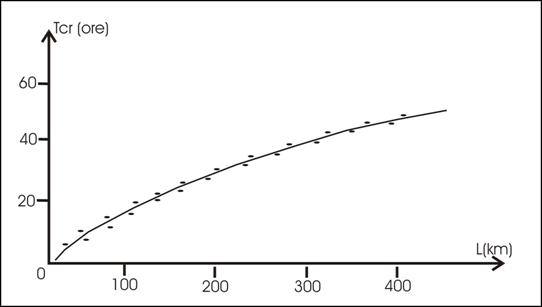 d.Corelatia intre Tcr sau Ttot si lungimea raului (pana la sectiunea de calcul).
