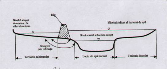 Fig.4. Indiguiri pentru apararea impotriva inundatiilor (dupa Giurma I, 2003)
