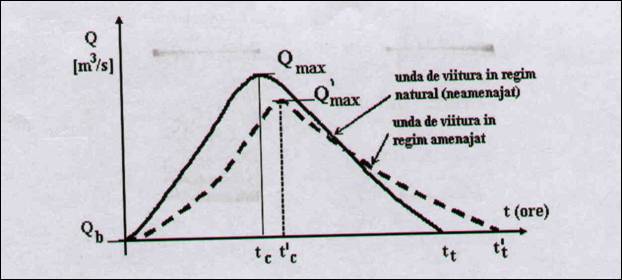 Daca derivarea este pe acelasi curs de apa, atenuarea viiturilor se realizeaza pe sectorul acesteia, in amonte si in aval debitele maxime ramanand neinfluentate.