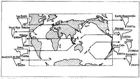 Fig.2. Distributia gropilor abisale din Oc.Pacific si groapa Peru-Chile