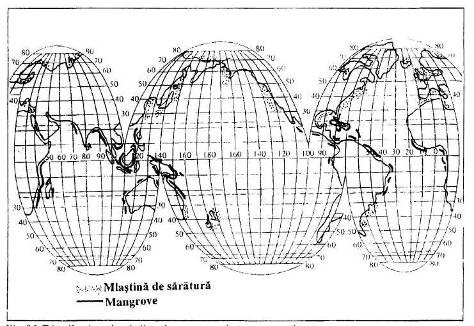 Fig. 5. Distributia mlastinilor de saratura si a mangrovelor