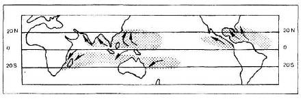 Fig. 12. Regiunile afectate frecvent de cicloni