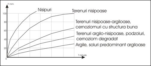 In general o formula de apreciere aintensitatii de infiltrare (f) obtinuta experimental la statiunile de cercetari agricole Perieni - Barlad este:
