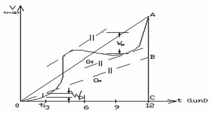 In cazul a, pe hidrograful viiturii de calcul se unesc cateva puncte situate pe abcisa cu punctul ce reprezinta Qd.max