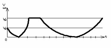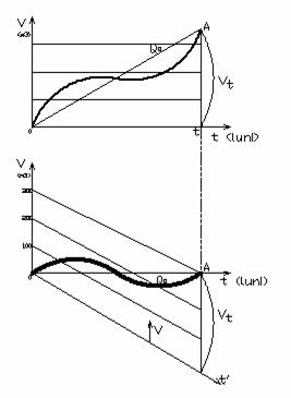 Se roteste dreapta OA in jurul punctului O pana cand ajunge orizontala. (Pe verticala timpului scurs t se masoara volumul de apa scurs in acest timp Vt)