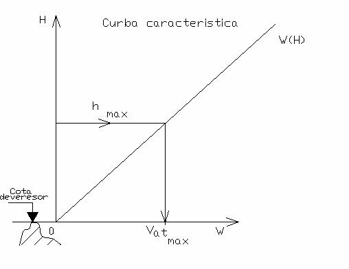 se utilizeaza curba caracteristica a acumularii W(H) - portiunea de la cota crestei deversorului in sus