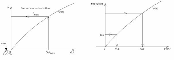De pe curba caracteristica W(H) a acumularii se citeste pentru hmax admis pe deversor valoarea Wat max, iar cu aceasta valoare se intra in graficul Wat(Qd max) si se determina Qd max.