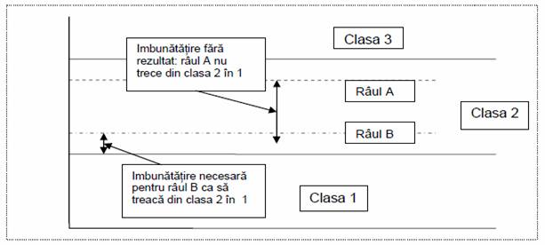 Fig. 4.1. Imbunatatiri necesare pentru ca un rau sa treaca din clasa 2 in clasa 1