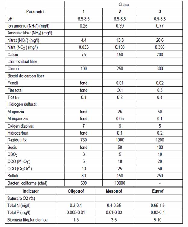 Fiecare clasa de apa a fost caracterizata de un set de limite pentru parametri-cheie.
