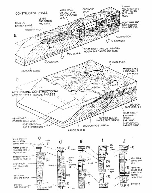 Coleman J.M. and Prior D.B., 1982, Deltaic environments. In: Sandstones Depositional environments (ed by Scholle et al.). AAPG Mem, 31: 139-178.