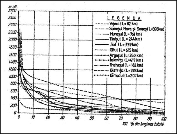 longitudinale ale principalelor rauri din Romania.