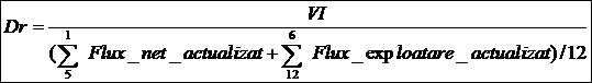 Durata de recuperare a investitiei (Dr) - trebuie sa fie maxim 12 ani ;