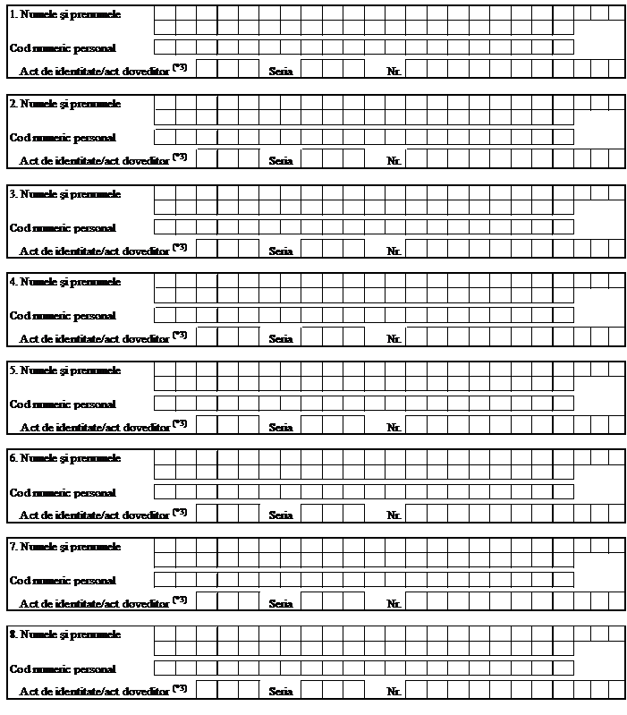 (*1) In cazul cetatenilor romani se va specifica tipul de act de identitate: