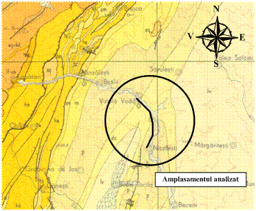 Din punct de vedere geologic perimetrul cercetat face parte din zona de molasa a Carpatilor de Curbura, zona care s-a individualizat la inceputul Miocenului, ca urmare a ridicarii unitatilor flisului extern. Prin ridicarea flisului extern la marginea estica a acestuia s-a individualizat o depresiune marginala cu subsidenta foarte activa.