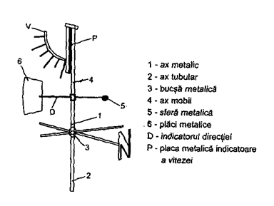 Valorile unghiurilor de oscilatie corespunzatoare diverselor viteze ale vantului din tabelul nr. 1 sunt indicate de numarul de ordine al dintilor, in fata carora oscileaza placa sub actiunea vantului - pentru girueta de tip Vild.