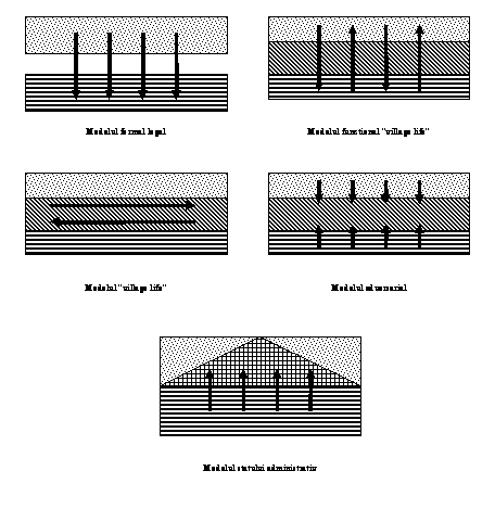 Al doilea model - "village life" - prezinta situatia in care cei doi actori sunt membri ai elitei statale si in consecinta nu sunt implicati in lupta pentru putere in cadrul structurilor guvernamentale. Influenta si trecerea granitei de separare se face pe orizontal la nivel departamental.