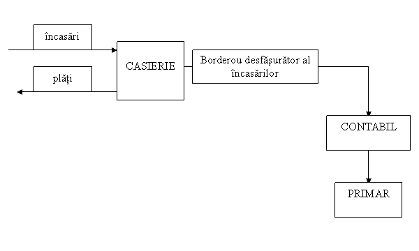 Schematic, contabilitatea operatiunilor realizate prin casierie la primaria Brosteni poate fi redata astfel: