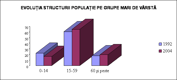 Aceasta evolutie a determinat reducerea ratei de dependenta demografica (numarul persoanelor tinere, de 0-14 ani si varstnice, de peste 60 ani, ce revine la 100 persoane in varsta de munca, de 15-59 ani) de la 65% in 1990 la 57,7 % in anul 2004, judetul Mures, situandu-se sub nivelul mediei nationale (57,9%).Avand o pondere relativ ridicata a populatiei varstnice, judetul Mures inregistreaza rata cea mai ridicata de dependenta demografica la nivelul Regiunii Centru.