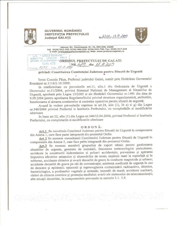 LISTA CUPRINZAND PRINCIPALELE ACTE NORMATIVE CU CARE OPEREAZA APARATUL DE SPECIALITATE AL INSTITUTIEI PREFECTULUI - JUDETUL GALATI