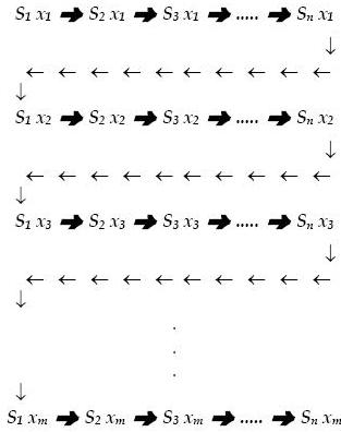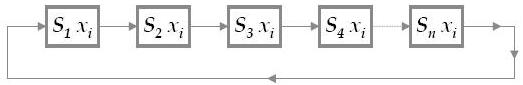 x1 nu este insa singura problema careia organizatia O trebuie sa-i faca fata. Sa presupunem ca la un moment dat pe agenda de lucru a organizatiei apare problema xm. In acest moment toate secventele sunt reluate iar ciclul linear va arata in modul urmator: