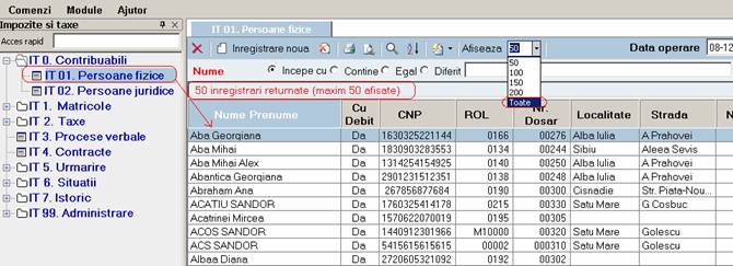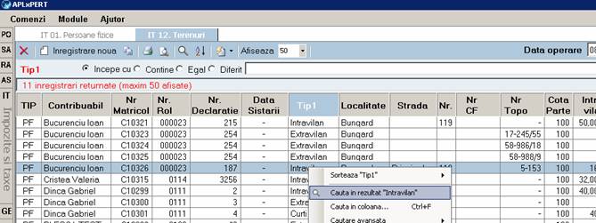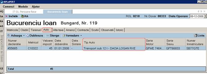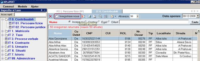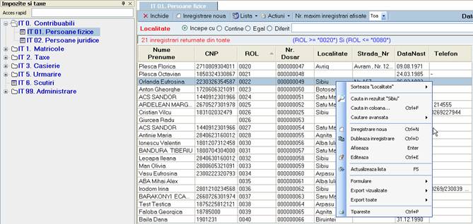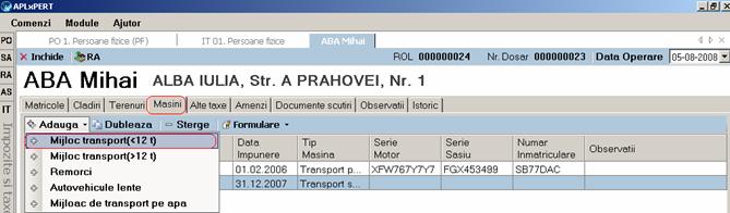Aplicatia APLxPERT - IT acopera, conform modului de lucru schitat mai sus, toate optiunile de introducere, procesare si raportare/listare a datelor conform cerintelor si proceselor standard/uzuale si speciale sau ad-hoc cunoscute in departamentul de impozite si taxe. Astfel detaliem mai jos, pentru fiecare grup de activitati :