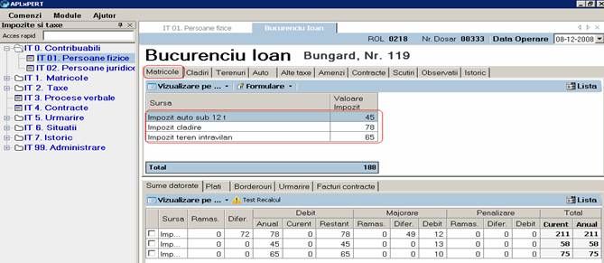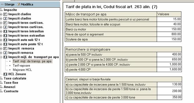 - Impozite (Cladiri, Terenuri, mijl. Transport);