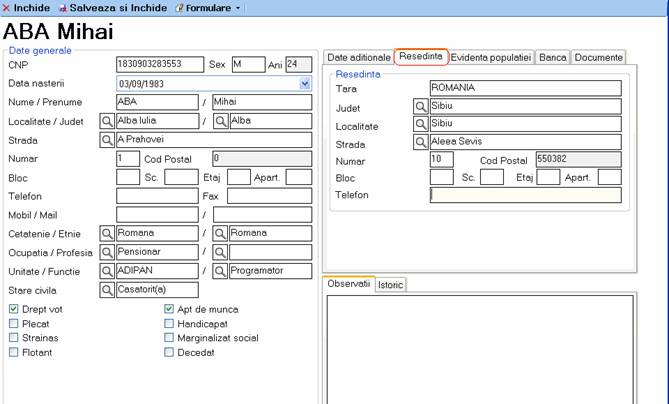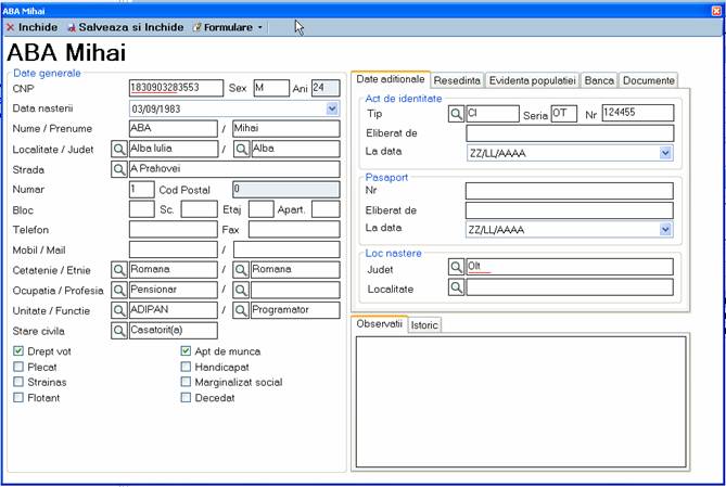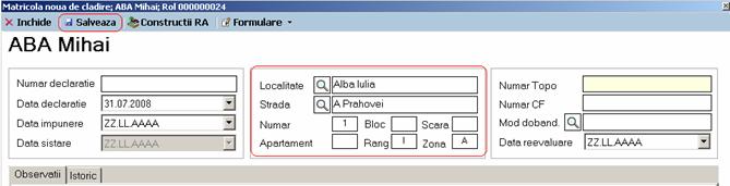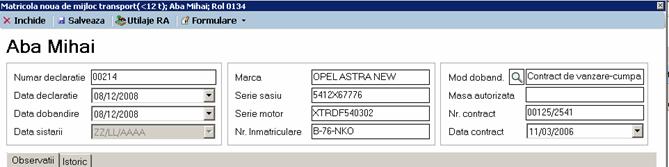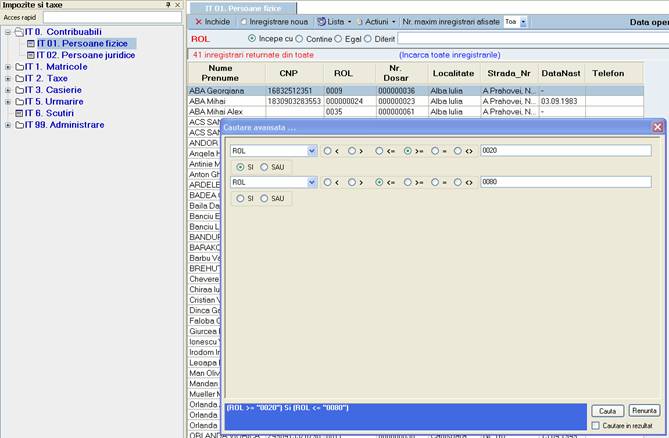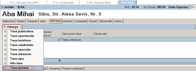 - primaria de oras: Operator ROL PF/PJ, Caserie, Inspector, Amenzi,