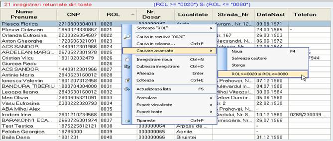 Ø Creste eficienta procesului managerial-decizional prin obtinerea de rapoarte ad-hoc cu datele existente, prin intermediul listelor sortabile, furnizand informatiile necesare in timp real.