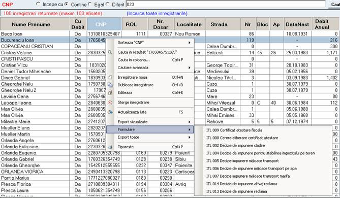 Ø Permite intocmirea borderourilor si centralizatoarelor privind debitele si incasarile necesare in evidentele contabile;