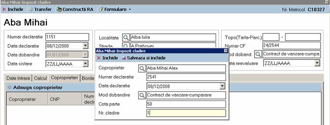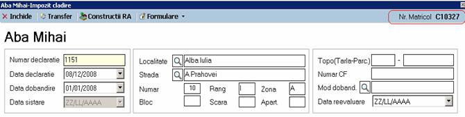 vine cu o Declaratie de Impunere: Ex. Impozit Cladire .