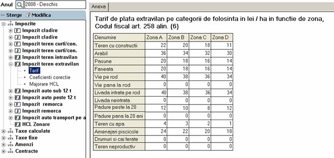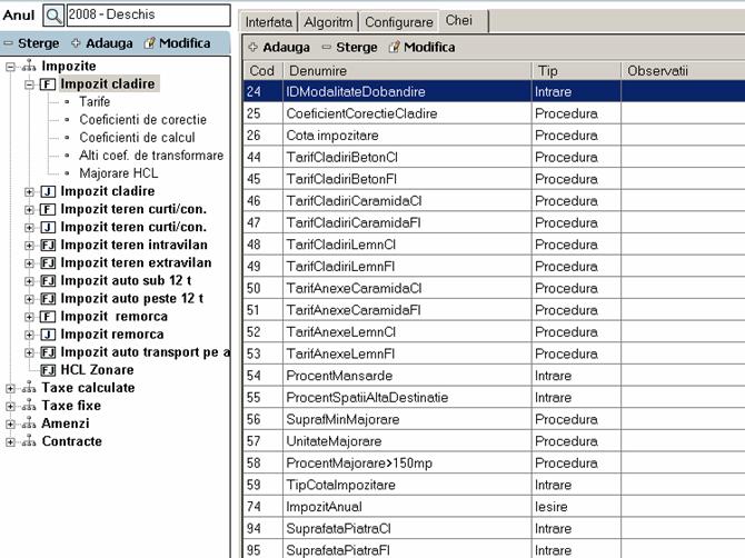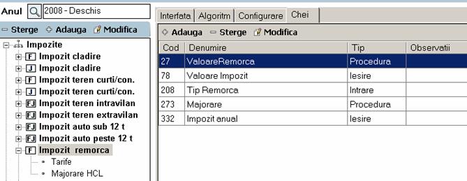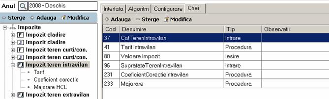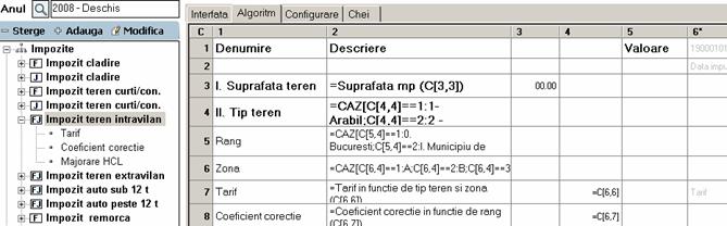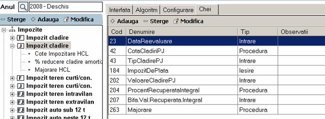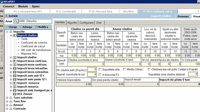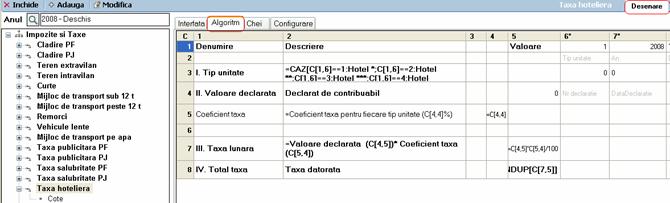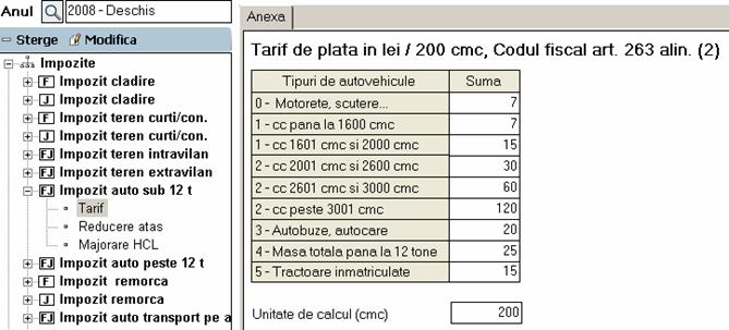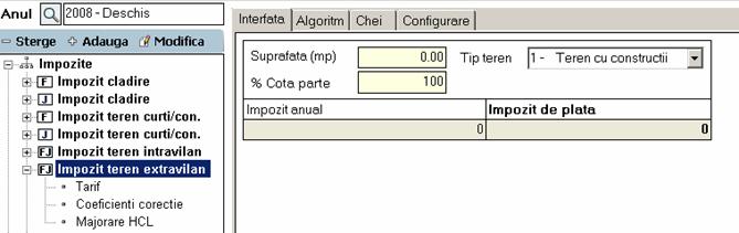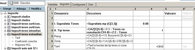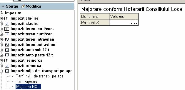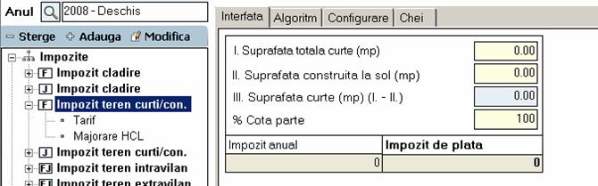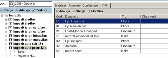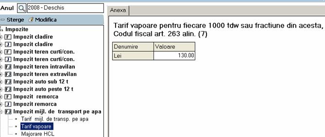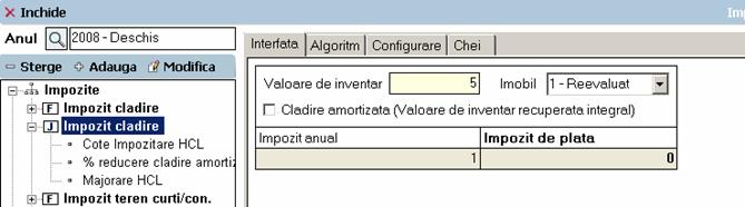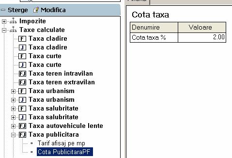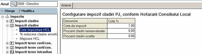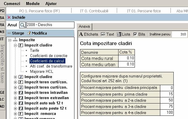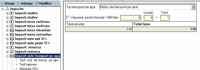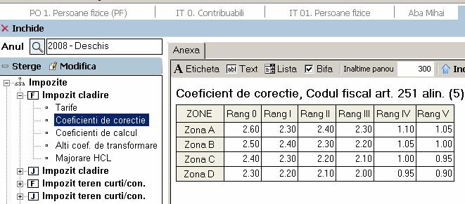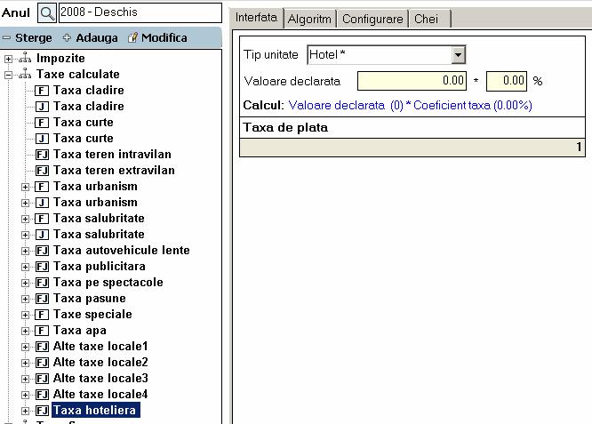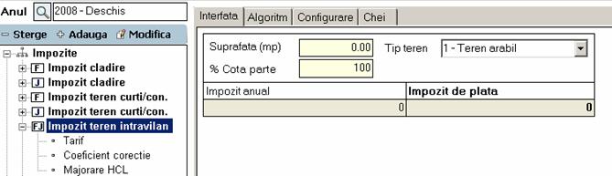 Astfel aici se vor completa datele pentru fiecare tip de impozit si anume: