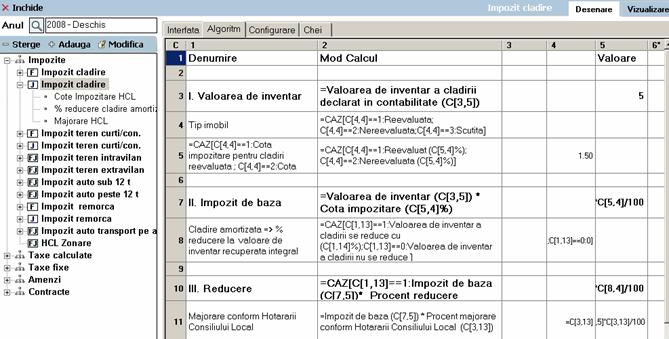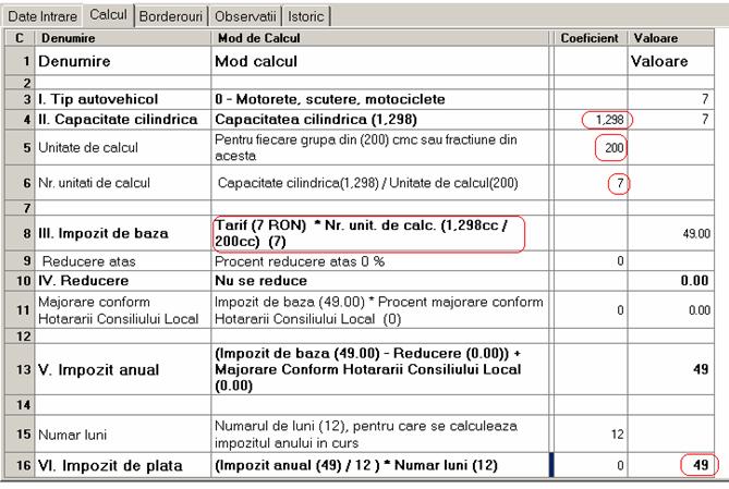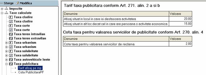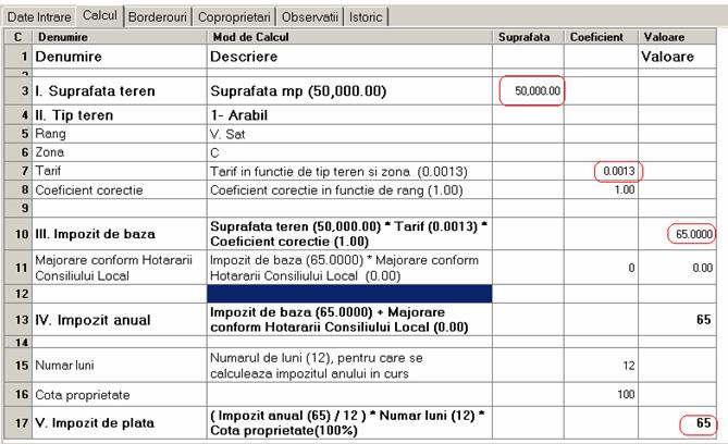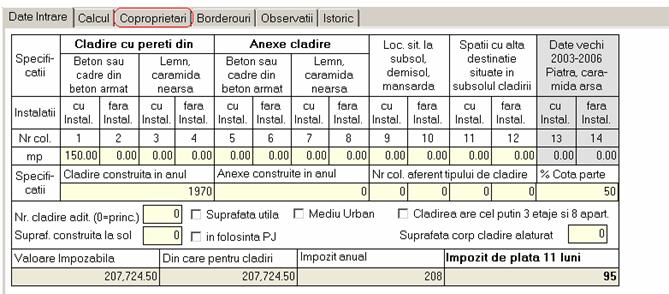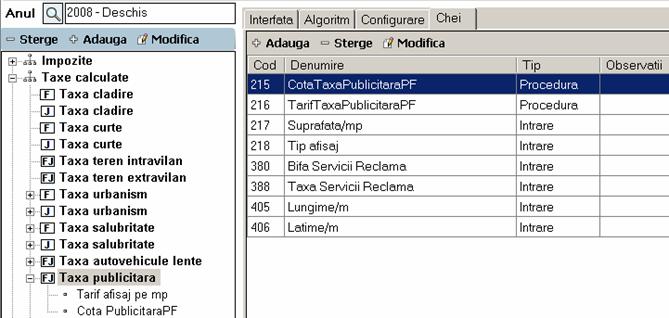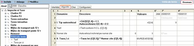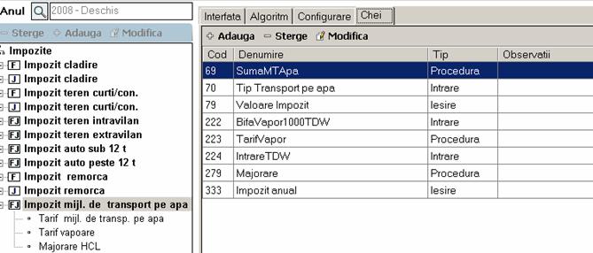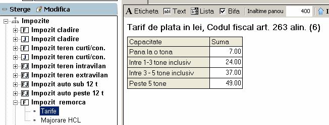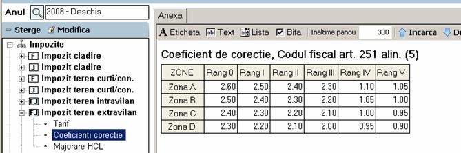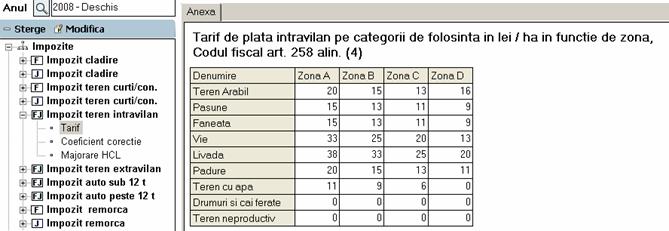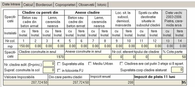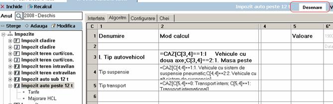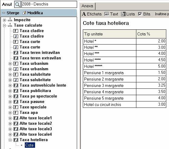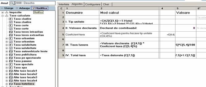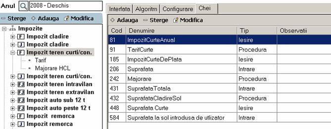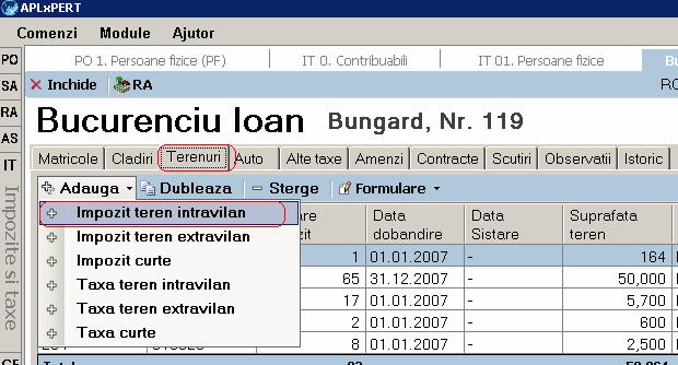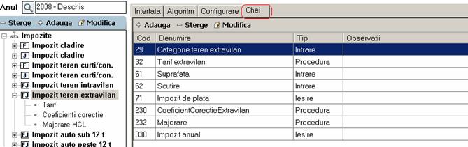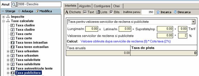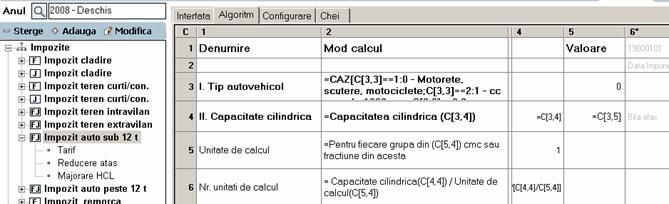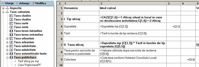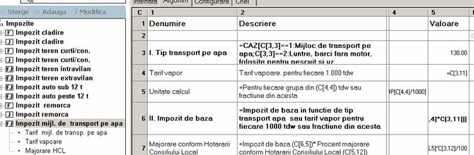 Astfel aici se vor completa datele pentru fiecare tip de impozit si anume: