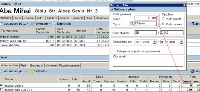 - inregistreaza plata si tipareste o chitanta in 2 exemplare (ptr. Contribuabil