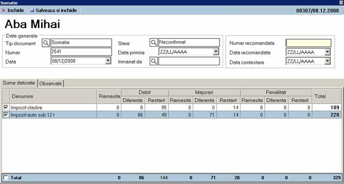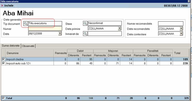 Ø Permite intocmirea si gestionarea documentelor de instiintare de plata precum si de urmarire a rau platnicilor pentru recuperarea creantelor bugetare ale bugetului local prin executare silita