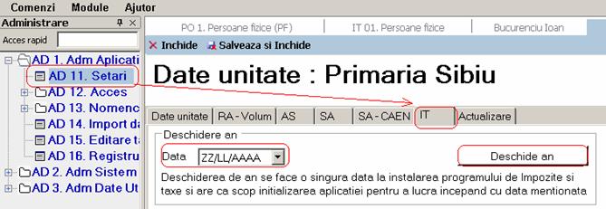 Dechiderea de an se face o singura data la instalarea programului de Impozite si taxe si are ca scop initializarea aplicatiei pentru a lucra incepand cu data mentionata.