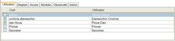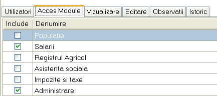 Similar, pentru acces la editare/vizualizare, se bifeaza modulele in forma respectiva.