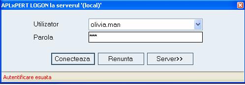 Dupa ce am introdus utilizatorul si parola apasam butonul "Conecteaza", in cazul in care dorim conectarea la aplicatie, sau renunta daca se doreste a abandona actiunea.
