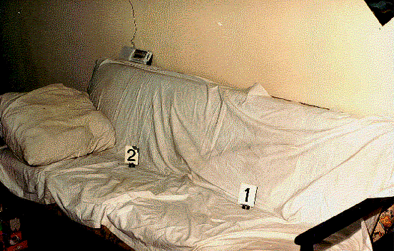 - In locul unde s-a savarsit fapta si cel unde se gaseste victima se actioneaza in functie de natura suportului si de prezenta unor obiecte asupra victimei sau in vecinatatea ei. Se cerceteaza dusumelele, locurile de imbinare a scandurilor si regiunile cu cusaturi, rupturi, sfasieturi sau cele prezentand pierderi de substanta de la nivelul suportului pe care este dispus corpul victimei etc.